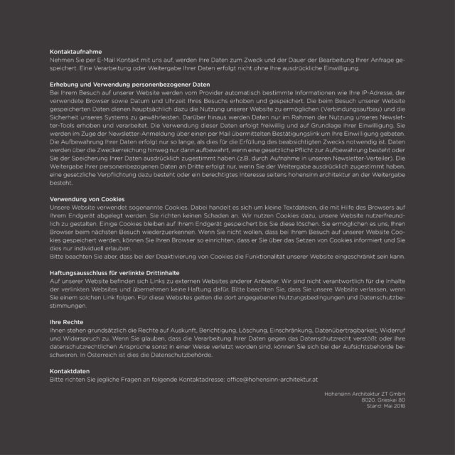 Mit dieser Erklärung möchten wir Sie über die Verwendung Ihrer Daten auf unserer Website www.hohensinn-architektur.at informieren.