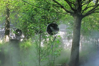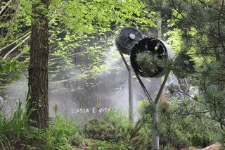 Dieser Effekt wird im Pavillon durch Verdunstungskühlung – aber ohne Klimageräte – technisch unterstützt. So kann das gefühlte Klima eines dichten Waldes aus Österreich mit vergleichsweise natürlichen Maßnahmen nachgestellt werden, der auf den kühlende Effekt der Evapo-Transpiration der Pfl anzen beruht. Das erzielte Ergebnis unterscheidet sich auf unterschiedlichen Sinnesebenen deutlich von der vorgefundenen Luft und Klima in Mailand und wird dadurch wahrnehmbar. breathe ist ein natürlicher Kreislauf, deren ökologische Performanz im Zentrum steht: Die 100prozentige Waldbepflanzung ist ein modellhafter Beitrag für urbane Handlungsweisen, denn der integrale Einsatz von Landschaft kann urbane Lebensformen mit genügend Sauerstoff und kühlender Luft versorgen, wodurch wiederum auf Österreichs nachhaltige Aufforstungspolitik verwiesen werden kann oder in Umkehrung auf den weltweiten Rückgang von lebensnotwendigem Baumbestand. Sie dient somit einerseits als formaler Fundus für das umfassende Leitmotiv ‚Luft und Klima im 21.Jahrhundert’, anderseits als inhaltlicher Interventions- und Experimentalraum künstlerischer und wissenschaftlicher Arbeit.