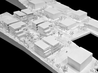 Am Pfanghofweg in Graz entsteht ein leistbares, autofreies Wohnquartier, im Bereich zwischen dichter Stadtbebauung und dem Übergang zum landwirtschaftlich genutzten Raum.