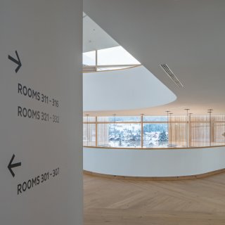 Auf diese Weise ergibt sich eine spannende Interaktion zwischen dem Gebäude und den drei Hauptblickrichtungen Loser, Seeblick mit Trisselwand und Dachstein. Die daraus abgeleitete Teilung des Gebäudes in drei Hauptbaukörper reduziert das Bauvolumen auf ortsübliche Dimensionen. Weiters reagiert das Hotelgebäude durch die Situierung seiner drei gegliederten Baukörper auf die Nachbarbebauung, indem sich die Baumasse von einem zentralen Atrium aus zu den Enden der Bauteile hin abstuft. Die Gestaltung der Innen- und Außenräume bis hin zur Materialität steht die Architektur im direkten Kontext mit der traditionellen Bebauung von Altaussee. Die architektonische Gestaltung berücksichtigt den regionalen Charakter durch das Interpretieren und Einfügen traditioneller Farben und Ornamente. Durch die horizontale Schichtung entstehen der Sockel mit Stein und den aufgehenden Gebäudeteilen mit einer Holzfassade. Damit entsteht eine vertikale Gliederung der Gebäude entsprechend dem für Altaussee typischen Baustil.